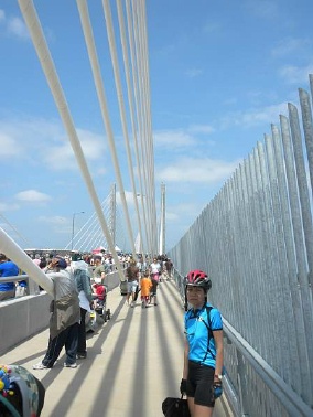 It was this area where I went to work with long daily commutes ..our company designed & constructed the bridge, highway ramps and bike ramps (which have people walking today in photo). Today they did not allow any bikes on bridge deck...to allow crowd of people to walk about. Probably their only car-free chance (unless there is another similar car-free event).