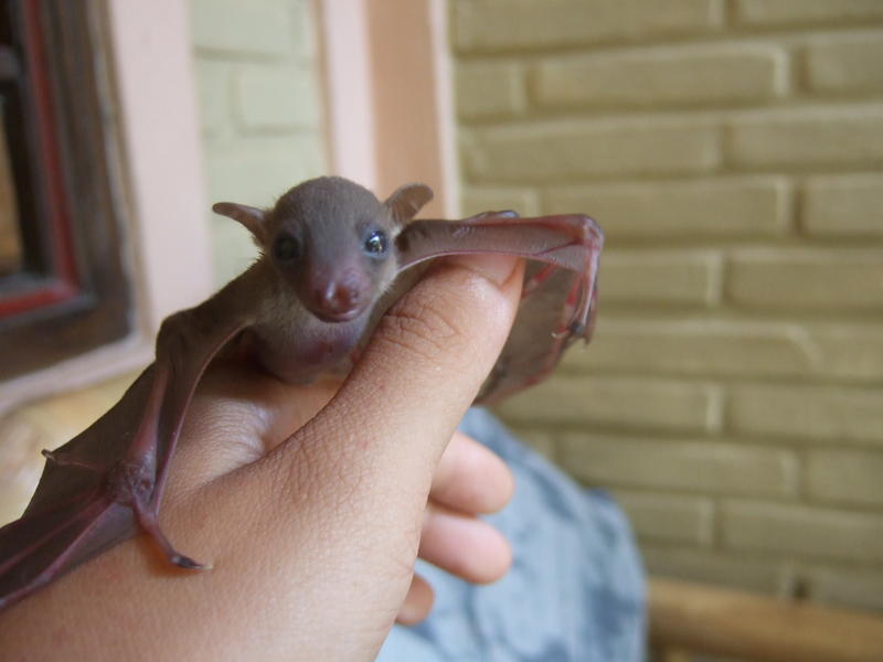 I was in Bali, and we were just walking along the street when this little creature was just hanging there at eye level on a stray branch. I wanted to take him somewhere more peaceful, so took him and brought him to my hotel where they have a lovely garden. cradled him in my hand for a good hour or so while we walked back to the hotel. He just curled up and slept. liked it so much he refused to leave my hand when i tried to put him in a tree. needless to say, I wasn't able to bring him home to my country, so I cried when i had to leave him behind. I really cried... all my friends laughed at me for being the bat mama.