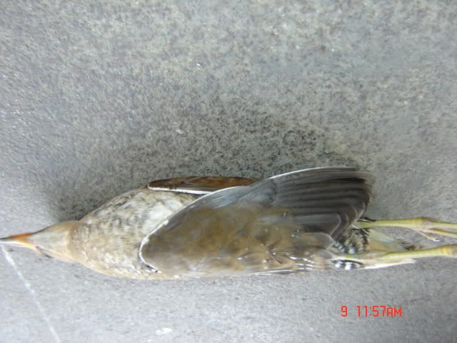 I went to work this morning and found this poor thing deadAs I've never seen a bird like it before, does someone here know what kind of bird it is? I did a very rough search and it looks a bit like a thrasher or a thrush, but I really don't know birds. It's about the size of a robin and was found in Vancouver, B.C.