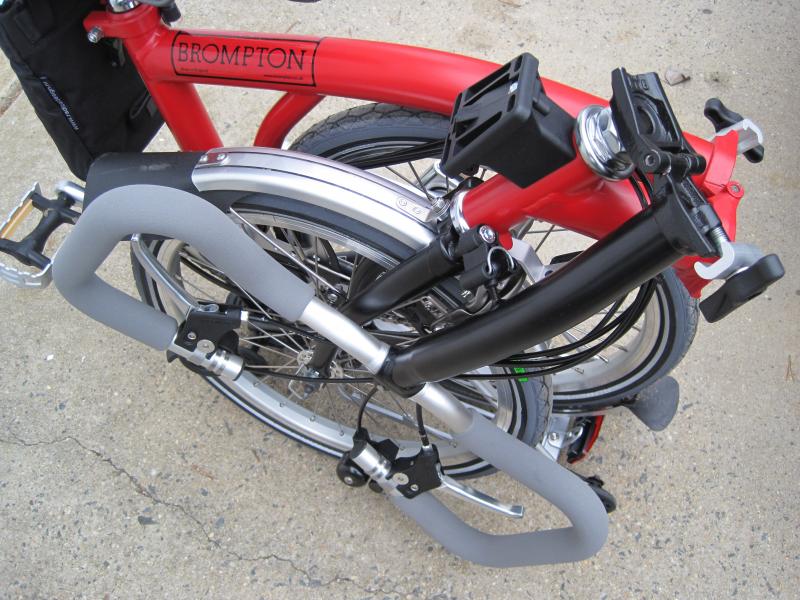 Congrats on your Brompton. I have a Dahon and have thought about other versions of the folding bike. What do you think about those handlebars? Do they fold down to a 90 degree angle? I can't quite figure them out. Enjoy your rides and the flexability that the bike gives you.