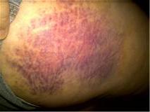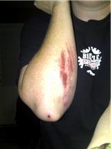 I attached some photos of my "souvenirs". The hematoma is my hip and upper thigh. I have never had a bruise like that, two weeks later and LOTS of arnica it is almost healed. My Dad was not amused, I may be 30 but I am still his little girl. He was worried when I emailed my mom the hematoma photo. He called me asking if I was going to keep racing, of course I am!