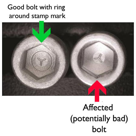 You can contort yourself upside down and look inside the bolt that holds the clamp around the saddle. It should have a circle around the mark inside. If it does NOT...its part of the recall.