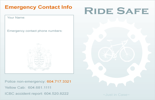These popped up in that other bike form, a personal injury lawyer made some up. While things don't really work like that in Canada, I thought it was a great idea! And I really could have used one a few a days ago, when you get hit it can be hard to remember to get all the details, like the exact cross street (which I totally blanked on).