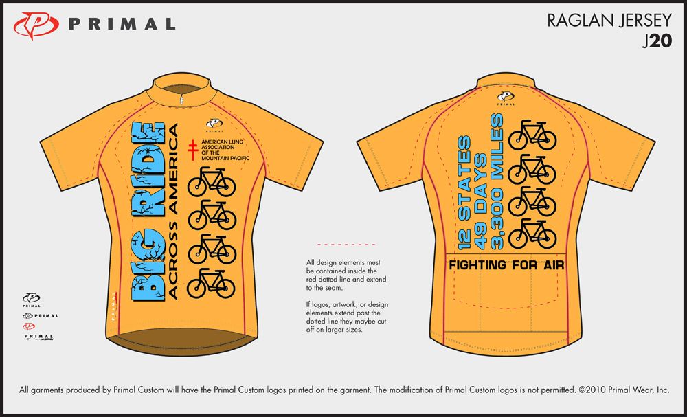 I've volunteered to design this year's Big Ride Across America jersey and my account rep at Primal Wear suggests that I narrow my options down to two or three by the time I send them off to the other riders for voting. I plan to do 6 or 7 (maybe more) designs, but for now, I've got three. I'll update the thread each time I come up with another.