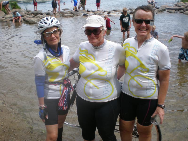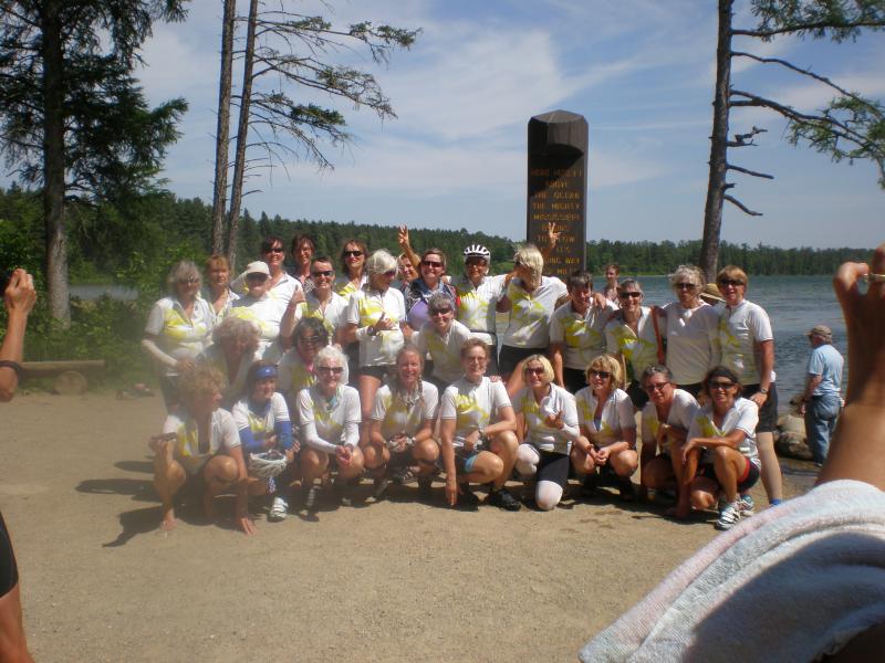 attached is a photo of Moira, the Scotch lady, Kris, my older sister, and myself at the headwaters, a group photo of most of the riders and the two guides, and bikes and riders on the bus on the way to the airport in Minneapolis