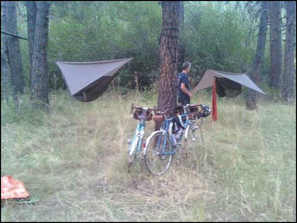 The Bike Hermit and I woke up to so much forest fire smoke on Saturday we couldn't see the foothills less than 1/2 mile away. Pulling up the DEQ air quality reports we determined heading West to Oregon was the best bet. Packed the hammocks, the bikes and food. 2 1/2 hours in the car found us at Austin Jct. on Hwy 26 and Hwy 7 in Grant County, Oregon. The nice lady who runs the store/bar/cafe directed us to county road 20, runs along the middle fork of the John Day river. Beautiful and mostly forest service land. Found a great site for hanging the tents, a little close to the road but virtually zero traffic. Great road for biking - we had a nice 22 mile noodle before dinner.
