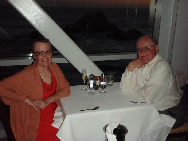 The ferry ride stopped at one island in the bay which is a national park (Angels Island, and stopped at another to pick up some passengers, then went back past Alcatraz to the Fisherman's Wharf where we unloaded oursleves and the bikes. It was a short 1/2mile ride through the tourists to return the bike and we got back in time for a cleanup and a nap before a celebratory dinner at The Cliff House( a Victorian bath house for Sailors that has been converted to a restaurant.) The view of the ocean and the sunset was rather spectacular.