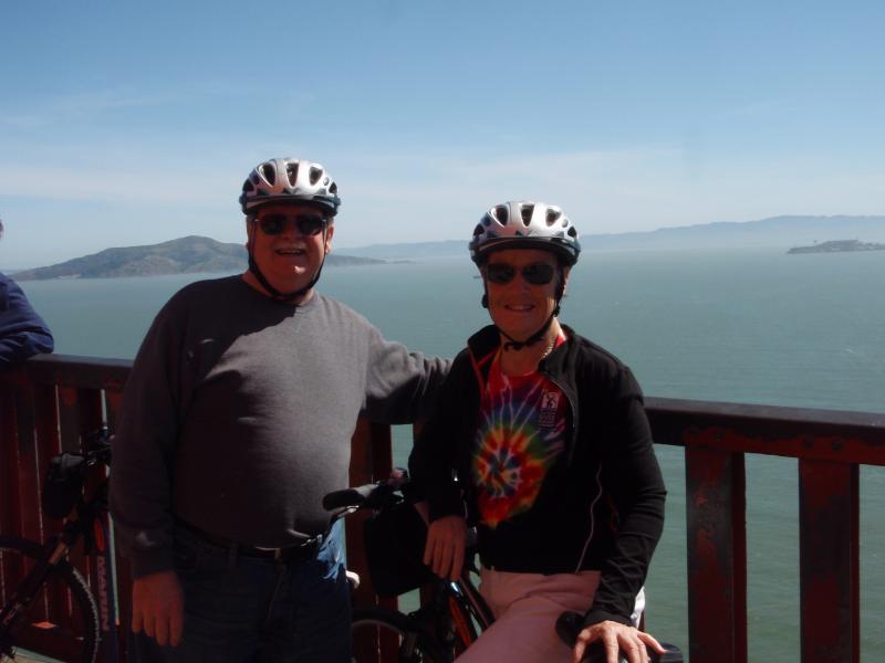 We thouroughly explored San Francisco, rode a cable car, ate too much dungenes and blue claw crab and celebrated the 40th anniversary day by riding a couple of rental bikes from Pier 39 ay Fisherman's wharf to Sausalito across the Golden Gate Bridge for a grand total of 12 miles. We have plans to make this an every ten years event until we have to be dragged across in trailers behind the bikes.