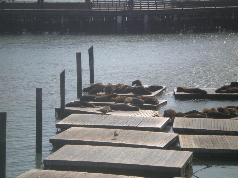 the captions should be: Sea lions at Fishermans Wharf, the anniversary couple, view off of the bridge to the shore, Marni and the Sag Guy on the bridge with Alcatraz behind, the bike path and one of the bridge supports.