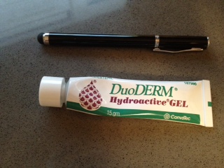 It's not cheap, a knee bandage was $5. But, you put it on and leave it on for up to 7 days. You can wear it in the shower with no problems. And you can watch the active ingredient literally pull the 'gook' out of the wound. Here's a picture of the bandage that he had on his hip; that's my ring on top of it so you can see how big it is. And they are flexible so it stuck on and molded the shape of his body. This covered the road rash on his hip. He had no problem sleeping, wearing clothes or showering. He left it on for 7 days and after 7 days he was completely healed. This bandage was about $15. But he said it was worth the cost in how it soothed the wound and made it so he could still dress for work and travel.