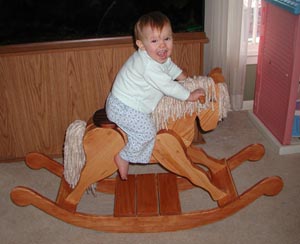 pic3 - my daughter (at 14 mos) on her horse her daddy made for her. It was his first major project.