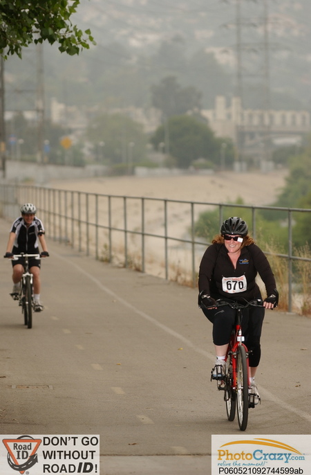 Lots of firsts for me today - I successfully completed the 15 mile version of the LA River Ride. So, it was my first organized ride, my first time doing 15 miles, my first ride T-shirt and ride number. I even got a nice blue ribbon for finishing