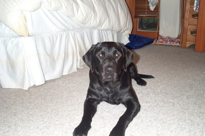 My boy's a breeder for Guide Dogs for the Blind. He gets to go on "dates" and make baby guide dogs. Dumb as a post, but SO sweet,