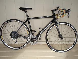 If anyone sees me, please stop and say hello! I drive a burgandy durango with a female cyclist sticker on the back window and beads hanging off the rear view mirror. Here's a picture of my bike - the handlebar tape is pretty easy to spot and I'll be wearing a sleeveless terry heart jersey that's yellow (black windbreaker) and a dark grey/silver helmet.